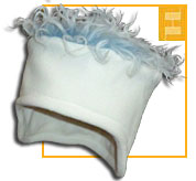 Wenn Du 140cm breite Meterware verwenden möchtest, brauchest Du etwa 25cm Fleece und für den 'Deckel' 22x22cm Zottelplüsch. Die Mütze wird komplett gefüttert,